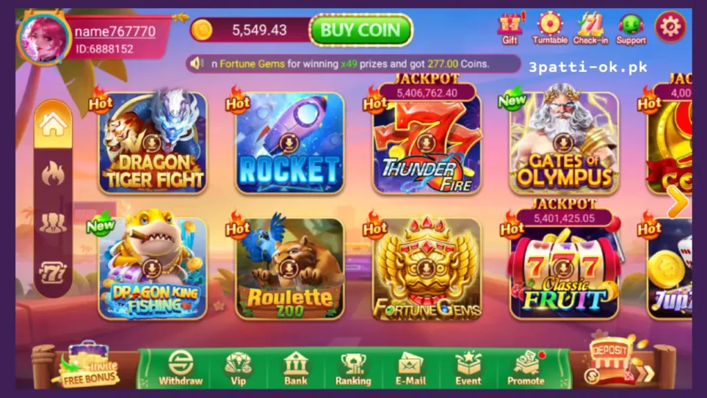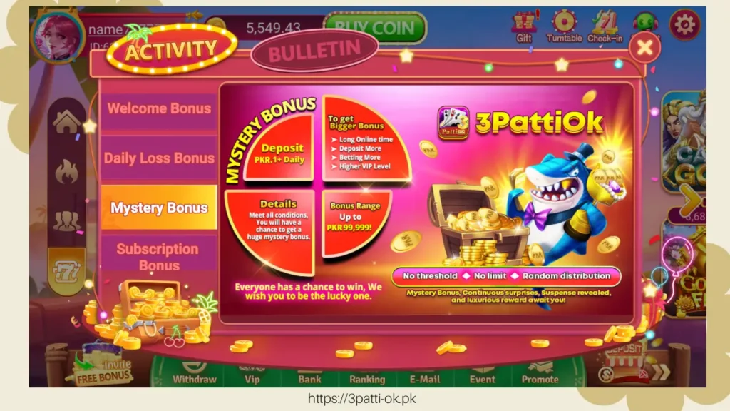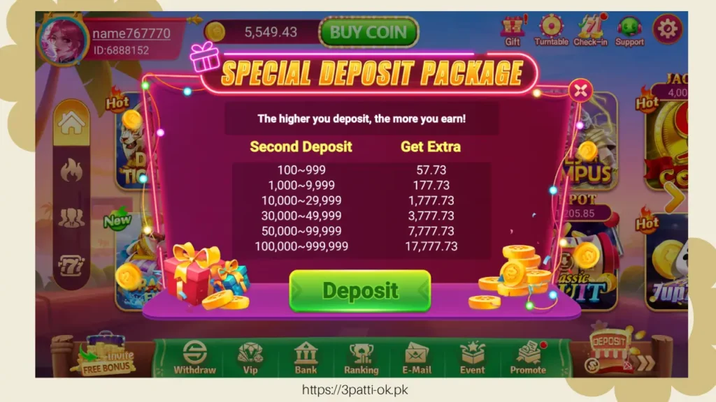 In 3 Patti OK, players can join multiplayer online games anytime, anywhere, competing against players from Pakistan and around the world. Real-time interaction and social features make the game not only entertainment but also a platform for making friends.