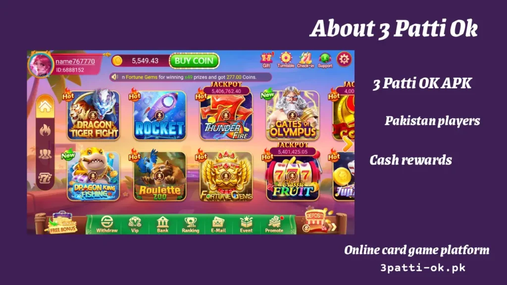 3 Patti OK APK is a lightweight and rapidly growing online card game platform offering players a wealth of entertainment content and cash rewards. No matter where you are in Pakistan, you can easily access and play this game anytime, anywhere, and try your luck. The platform includes a variety of popular card games and is constantly updated with the latest versions and new game modes to keep players entertained and engaged.